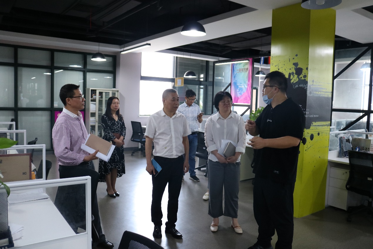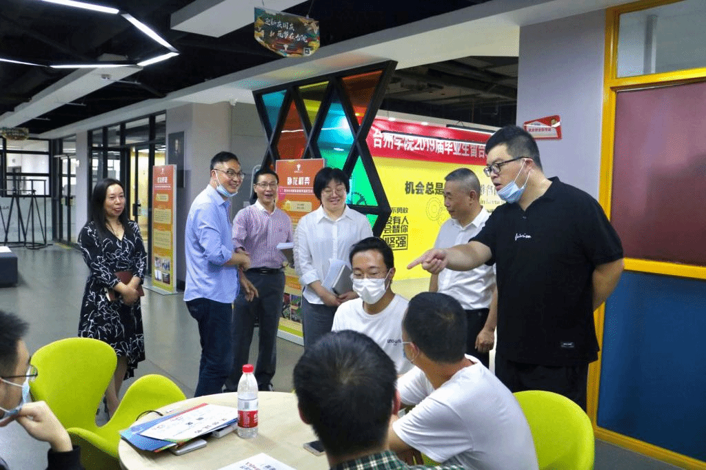 5 月 14 日下午,台州市市场监督管理局(知识产权局)副局长花文杰、知识产权处处长陈深和副处长沈艳宏一行在副校长李钧敏陪同下来我校椒江校区大学生创业园考察。
