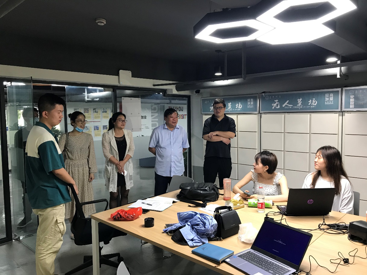 金先龙副书记和姚倩校长一行视察了创业园重点项目孵化区、跨境电商园、路演厅、众创空间和成果展示厅。与入驻的团队成员进行了深入交流,了解大学生创业的心路历程和创业过程中遇到的瓶颈,现场给予了指导和精神鼓励,对同学们创新创业精神给予了认可;姚倩一行还细致了解了我校创业班的开设情况、学生来源、师资结构、未来规划等,提出了将来与我校建立创业教育合作的初步意向。