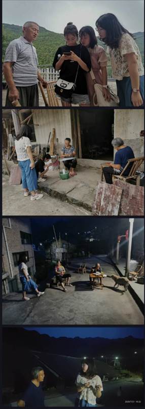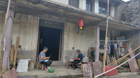 傍晚,趁着夜风凉凉,调研小队再次出门和农户唠唠家常,与他们交流了我们的基本设想,同时借此了解农户们对于旧屋改造的意愿,对后续事项的落实有一定的推进作用,并作为我们的策划依据。