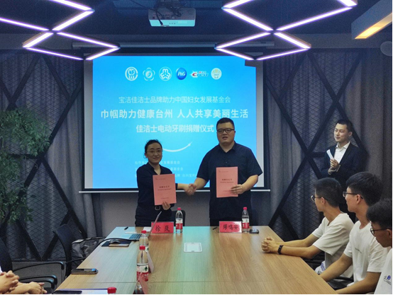 9月25日,“专业关爱伴你行,自信笑容传中国”——佳洁士品牌家庭支持行动公益捐赠仪式在创业学院4楼多功能厅举行。浙江省妇女儿童基金会徐岚女士,宝洁公司驻台州区域经理于朋飞,宝洁公司驻台州客户经理邱礼恒,台州宝利经贸有限公司销售经理郑亮,台州学院创业学院周瑶院长,缪鸣安副院长出席本次活动。