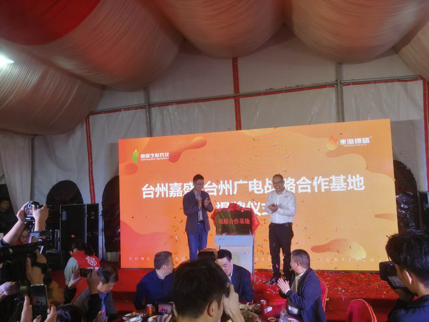 在发布会上,“东海爆橘”三位创始人分别向与会嘉宾畅谈创业心路,详细介绍了东海爆橘的发展历程,展望未来的美好蓝图。同时,公司还与台州广电签订了战略合作协议,共同推动农村电商的发展,助力乡村振兴,精准富农。