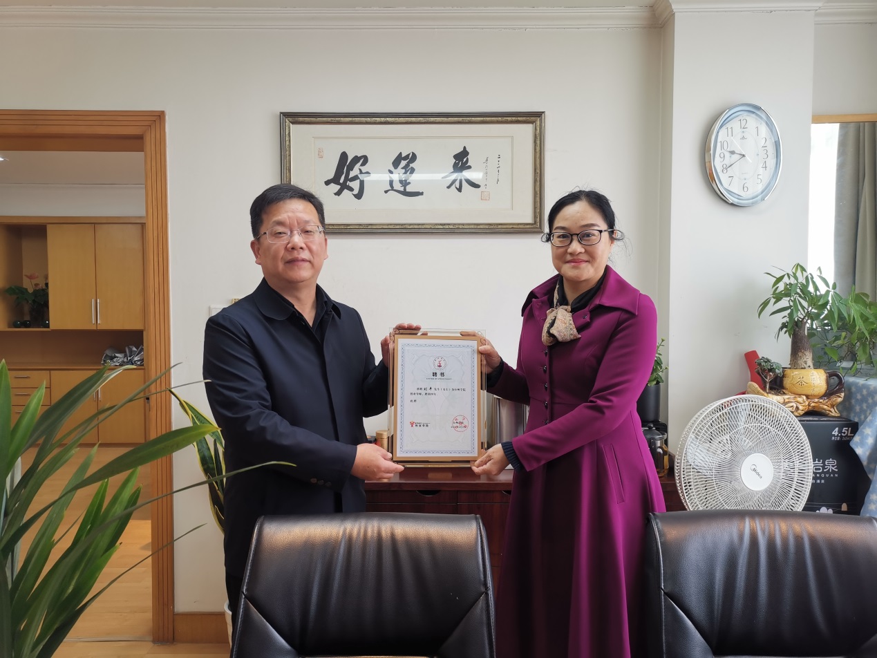 刘丰多年从事工商及市场监管工作,其中连续32年从事商标及品牌管理与服务工作,对商标与品牌战略有较深的研究和实践,曾指导与服务多家企业成功创建驰名品牌,成功推动并在全国推广商标质押融资改革试点和商业秘密系统保护工作,曾被评为全国商标管理工作先进个人。周瑶代表台州学院聘请刘丰为台州学院校外创业导师,并颁发聘书。