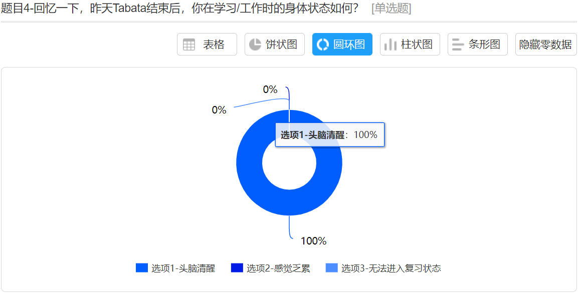 从活动后的回访统计数据来看,大家对此次有氧Tabata课程的喜欢程度较高,并且纷纷表示参与Tabata活动后的复习阶段觉得神清气爽,记忆效果明显提高。
