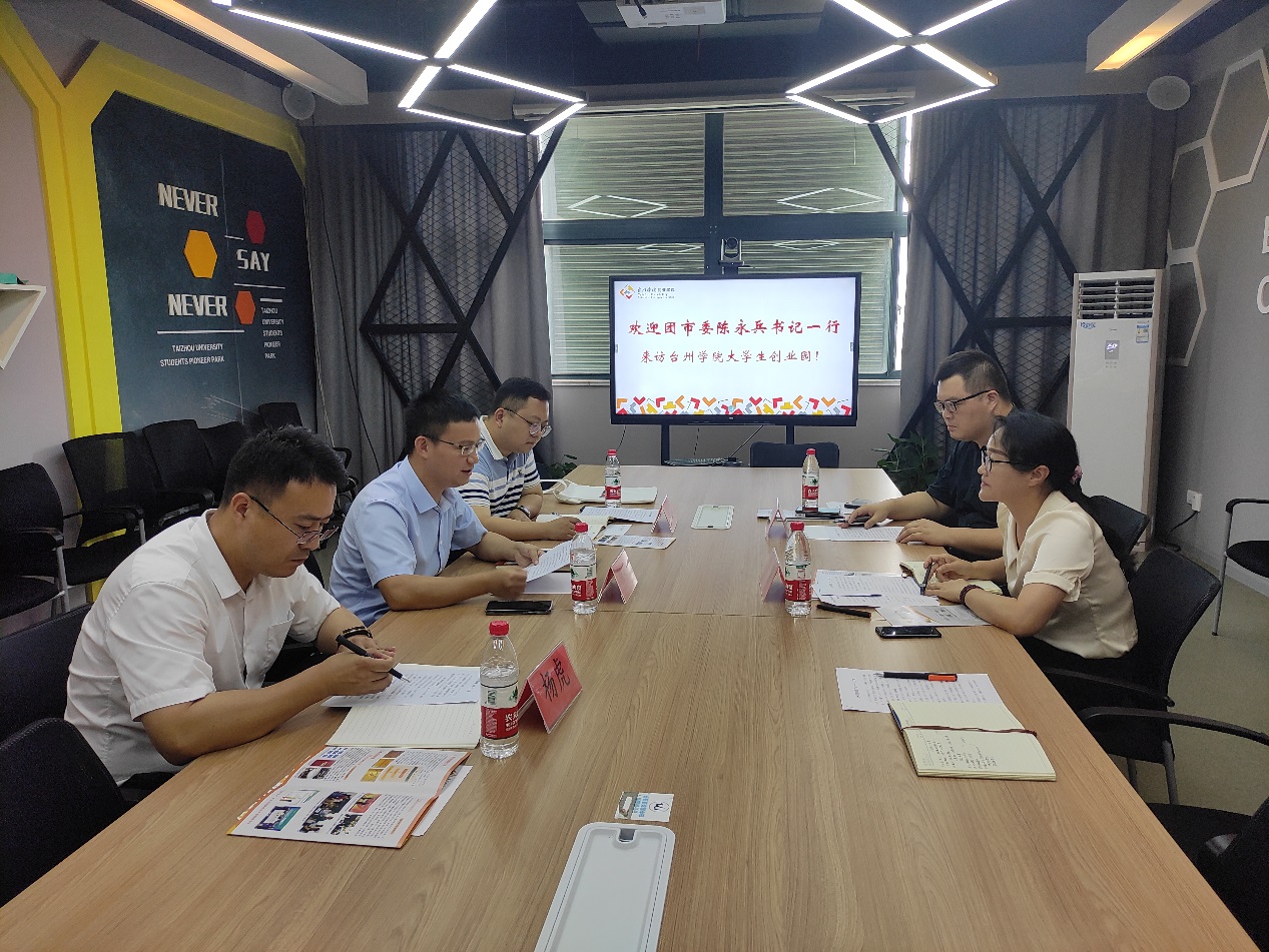 双方就台州团市委青创赋能工程展开深入交流,并初步就双创师资共培、双创赛事共办、平台基地共建、基金资金共享、团队合作共赢等方面达成初步合作意向。