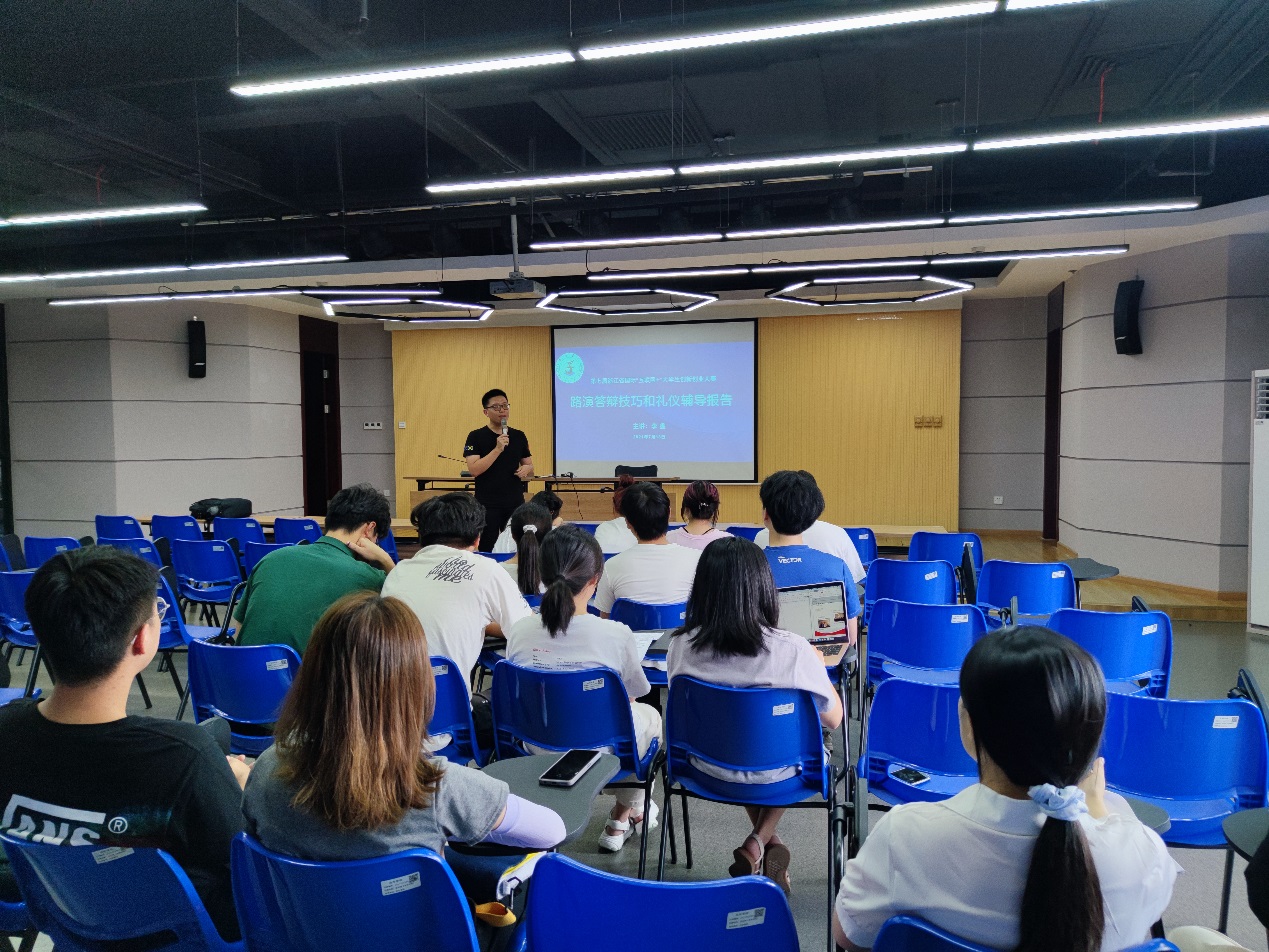 随后,针对本次大赛入围项目,来自建筑工程学院的资深赛事指导老师李鑫在创业园多功能厅举办了“路演答辩技巧和礼仪辅导”培训。李鑫老师从赛前准备工作、注意事项、路演答辩的基本礼仪等多视角、全方位为参赛选手进行了辅导,对本次赛事的顺利进行起到了良好的促进效果。