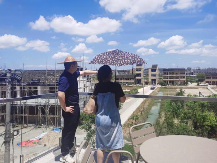 站在三层的平台上,天赐湖村的南半边平铺呈现,那地、那屋、那路之间的关系早已在俯瞰之中一目了然。配合着镇长和村长的热情介绍,“咔嚓——”几张全景大图和几张细节图,建筑学专业的学生的灵光乍现早已记录在了相册中。