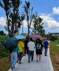 7月15日,台州学院“活力天赐队”在指导老师赵欣的带领下对台州市路桥区横街镇天赐湖村开启了初探索。团队由艺术、建工各一名老师带队,五名建筑学与两名视觉传达专业学生跨学院组成,聚集各方优势,定不负此行。