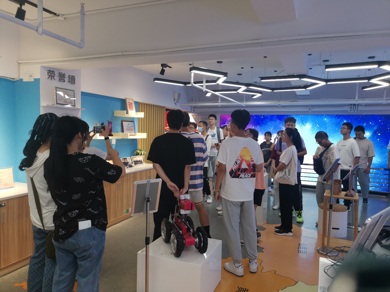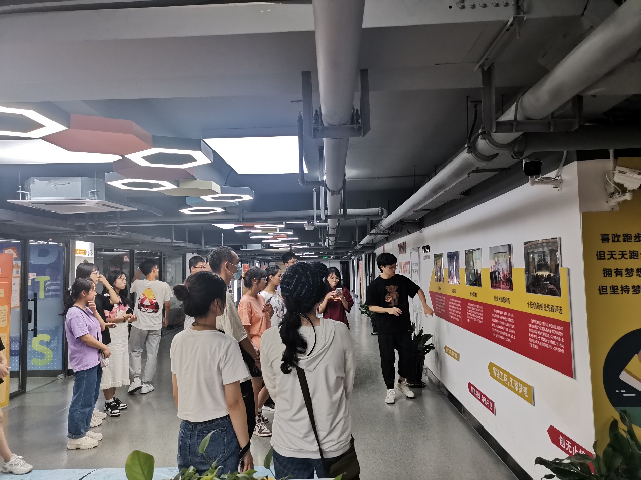 参观学生在解说员的带领下,参观了成果展示区、高级孵化区、众创空间、电商园、就业创业指导站、创业孵化中心、多功能培训厅和创客咖啡吧等功能区块,了解学校创新创业竞赛类别、入园团队的基本情况和创新创业服务工作,为今后的创新创业作准备。