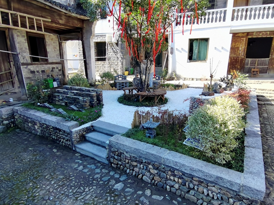 《三山三门 · 叶栖东澄》是基于岭南乡特产辉白茶的商业意向,参赛同学打造了一个具有茶文化展示功能的庭院空间,并使其满足品茶与休憩的使用功能。服务于村里百姓与外来游客。 庭院作为周边民宿的附属空间经营,改善环境的同时,创造一定的经济效益,同时也保障了其后期的运营。