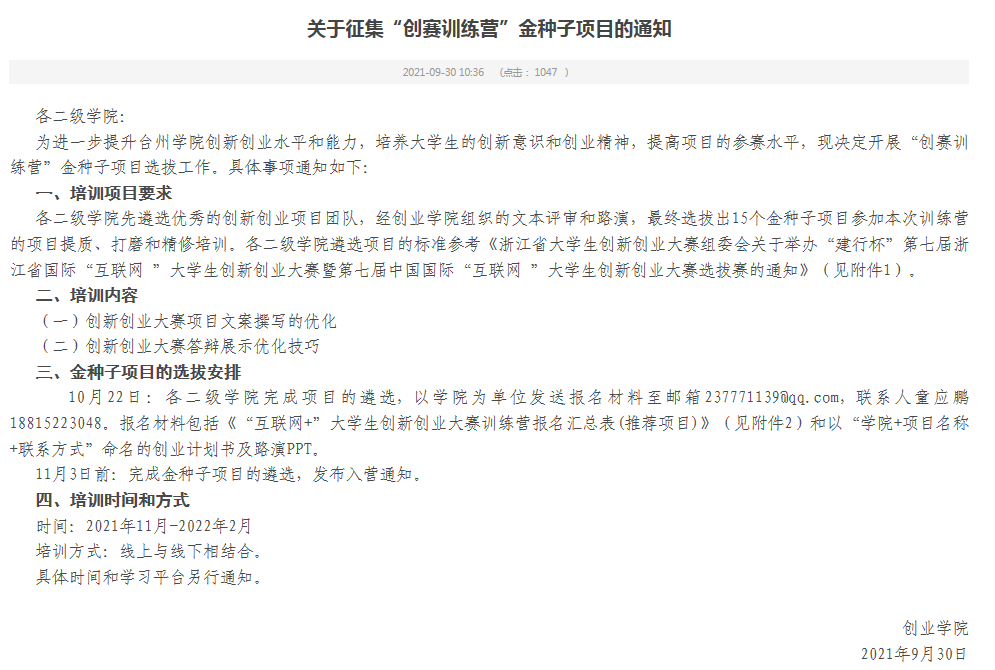 构建并完善双创课程体系。编制《台州学院双创教育十四五发展规划》,引进国家级精品慕课《大学生创业基础》以及创课之星双创课程库,开设《创赛训练营》等赛创融合课程,推动“课-赛-创”深度融合。