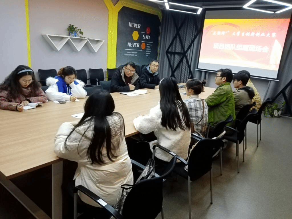 学生团队的组建是“互联网+”大学生创新创业大赛的关键环节之一。近日,由医化学院杨旭宇等老师指导的“互联网+”大学生创新创业项目启动了新一轮的学生参赛团队组建工作,并邀请创业学院副院长黄国波和童应鹏(挂职)进行现场指导。