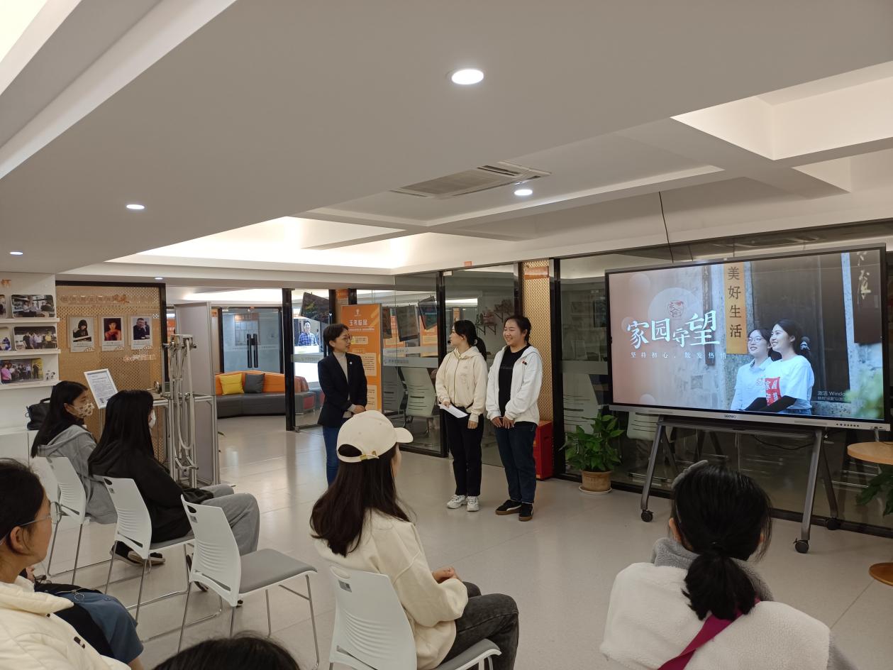 创业实践中心学生干部对参观同学介绍了创业中心的基本情况和团队现状。家园守望、青大E站、古色古香和偶尔茶四个优秀创业团队代表分别向同学们分享了她们自己团队项目发展历程以及今后发展规划。家园守望团队队员周凌云和涂雯玉分享了她们团队架构、项目成果以及未来推广,然后又以温峤为实例向同学们展示了她们团队怎样带动发展的几大方法。青大E站项目的指导老师蔡静,分享了他们团队项目的发展理念、项目简介以及项目的推广,通过正在举办的青大E站春日集市,真正给同学们上了一堂看得见的创业实践课。古色古香团队队员林嘉玺,分享了传统文化复苏和潮流下她们团队的主营业务,以及未来如何对项目进行推广。偶尔茶团队队员周辰虹,分享了高校文创新模式下她们团队项目简介、产品介绍、创新意义以及未来规划。同时还为她们团队今日的试营业进行了宣传。