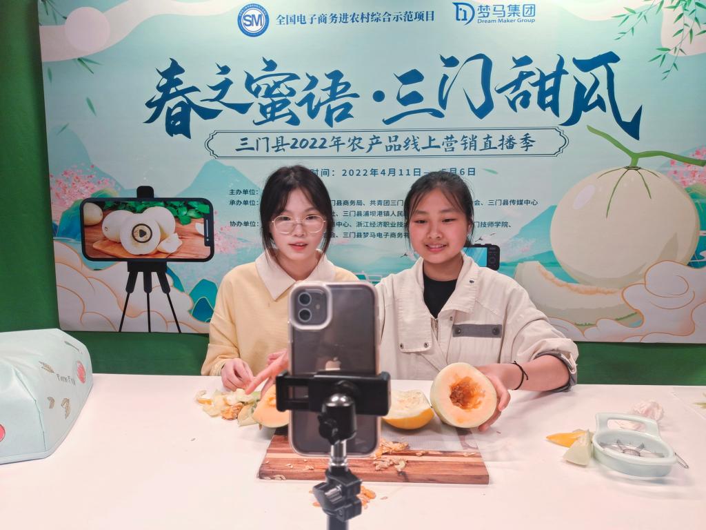 为响应“台州学院助推三门县高质量发展建设共同富裕先行县”,我校“青大E站”学生创业团队参与三门农产品电商帮扶活动,推出以直播带货的形式,使用新媒体的力量,在疫情严峻的形势下开启了一场三门甜瓜助农直播,帮助三门农产品的推广。