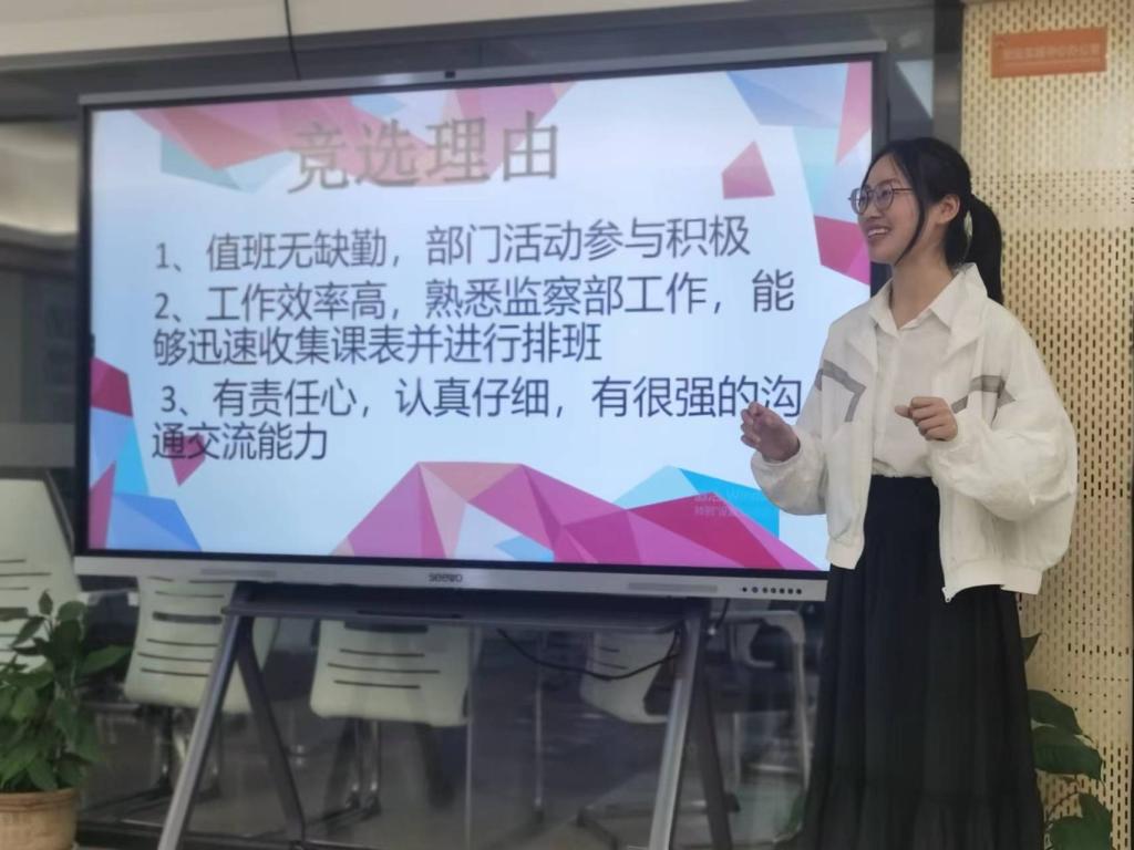 竞选环节中,主席团和部长候选人先后上台进行竞选演讲,内容包括自我介绍、工作分析、未来展望等方面。在竞选后的提问环节,大家也针对于对工作的改进思路以及未来规划进行了充分的讨论。秉承公平民主的原则,现场所有成员都进行了选举投票,结合会后部长、主席与老师们的充分讨论,选举结果产生新一届创实学生干部成员。