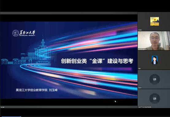 童应鹏对刘玉峰前来开展讲座表示欢迎,对各学院老师对双创工作的支持表示感谢。讲座过程中,刘玉峰介绍了黑龙江大学创业通识课基本情况,分享了在国家级一流社会实践课程申报中的经验,并与参会老师就如何在创业课程中实现理论与实践相结合、课程思政如何与双创教育相结合以及双创课程教学中遇到的困难进行了探讨交流。