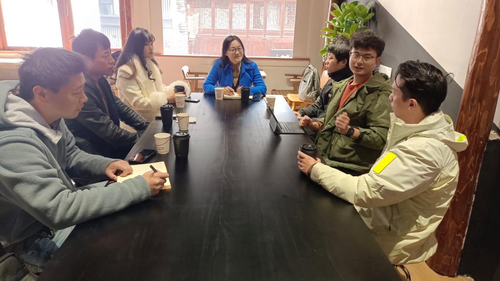 周瑶对我校大学生创业基本情况进行了介绍,并建议杨林跃等人对接我校KAB创业俱乐部和校园集市团队,为校内外创业团队深度合作共谋发展打好基础。