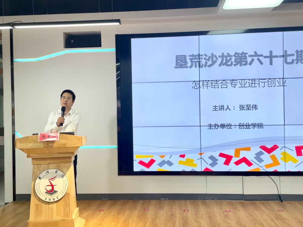 4月13日下午,垦荒沙龙第六十七期在椒江校区大学生创业园多功能厅顺利举行。创业学院特邀优秀校友张至伟就怎样结合专业进行创业为主题进行了经验分享。张至伟系我校艺术设计专业毕业生,先后荣获2021年浙江省社会组织领军人物;浙江省青年创业导师;台州市青年岗位能手;受聘2022年浙江省林业乡土专家。创业师生、KAB大学生创业俱乐部及临海校区创业团队共120余人线上线下同时参加此次活动。
