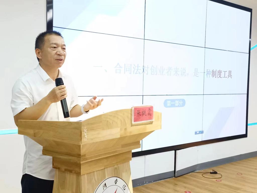 6月8日晚上,垦荒沙龙第七十三期以“创业中合同法的重要性”为主题在椒江校区大学生创业园多功能厅顺利举办。创业学院邀请北京盈科(台州)律师事务所党支部书记张挺霞律师为创业师生分享创业中合同法的重要性。我校创业导师、KAB大学生创业俱乐部及临海校区创业团队共70余人参加线下线上会议。