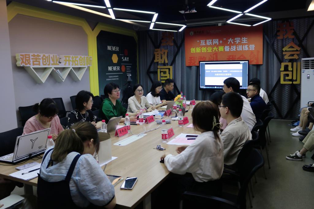 7月18日上午,第九届国际“互联网+”大学生创新创业大赛备战训练营第十三场模拟演练刚结束,校党委委员、副校长李钧敏来到大学生创业园,亲切慰问紧张备战省第九届“互联网+”大赛决赛的参赛师生队伍。创业学院院长周瑶、副院长李银丹、双创指导委员会委员、参赛项目团队成员和指导教师参加此次会议。
