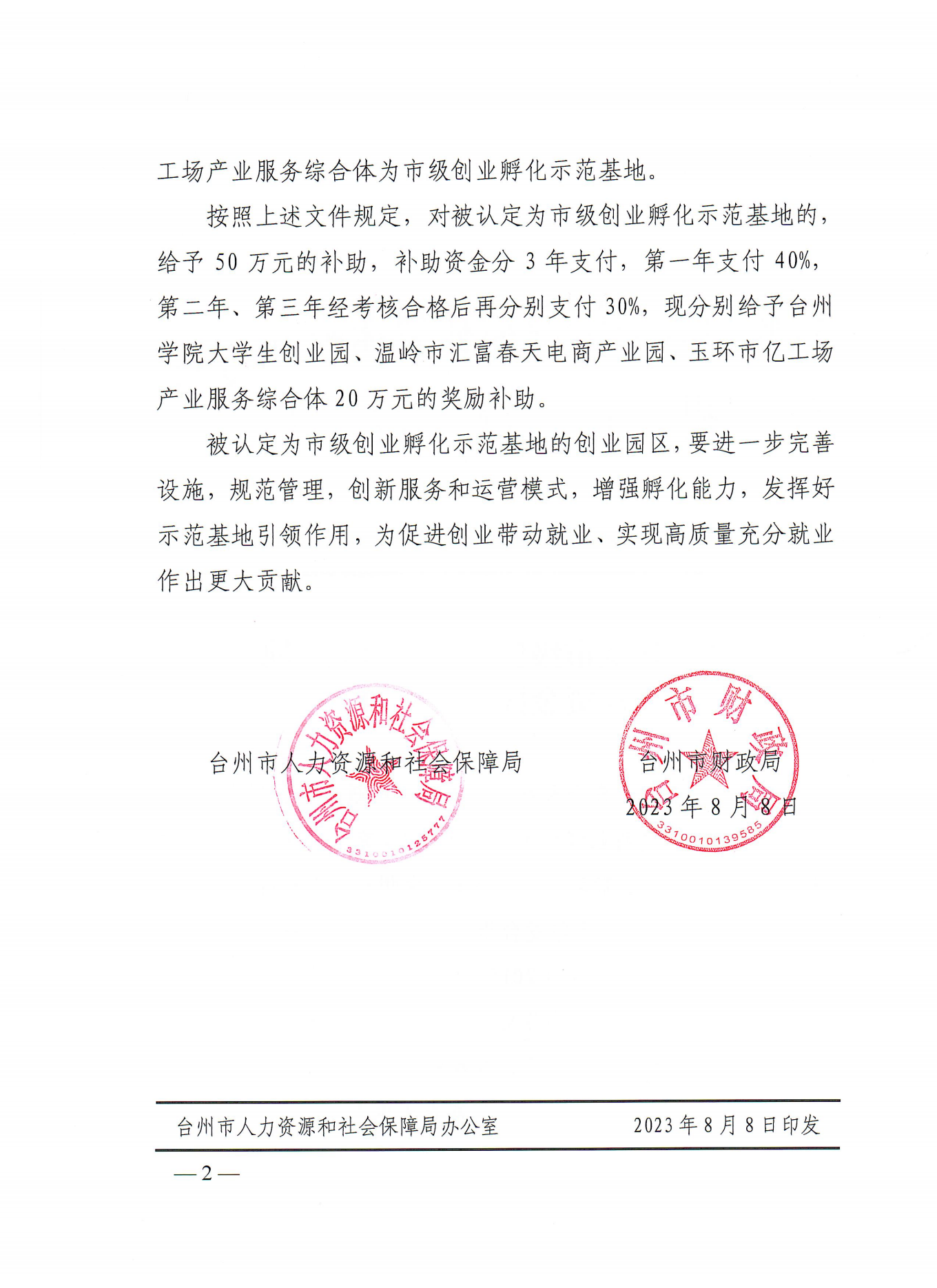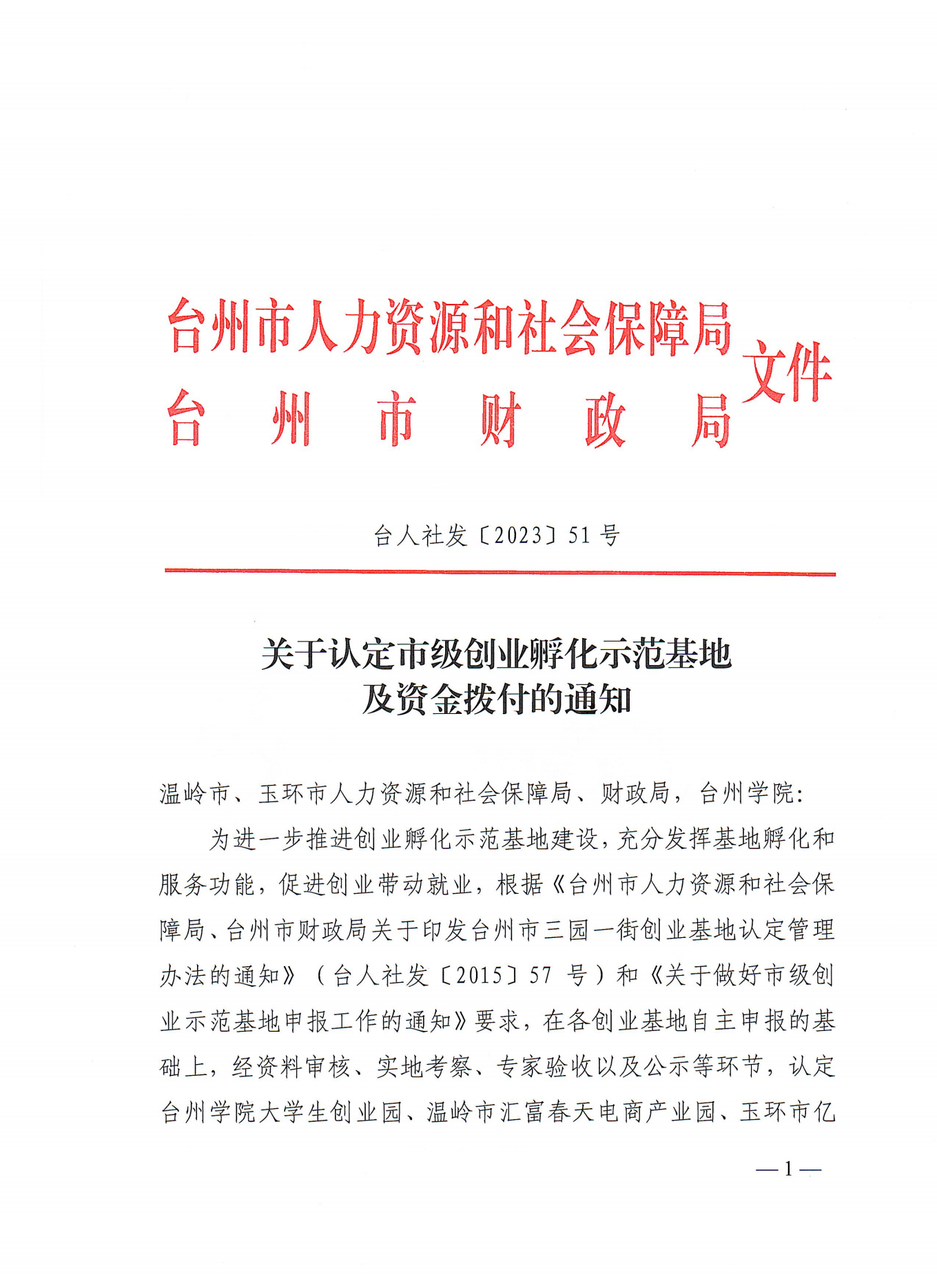 8月8日,台州市人力资源和社会保障局、台州市财政局发布《关于认定市级创业孵化示范基地及资金拨付的通知》,我校大学生创业园获批“市级创业孵化示范基地”,并获得三年共50万元的奖励补助。这是对大学生创业园充分发挥功能定位推动大学生创业工作的充分肯定。