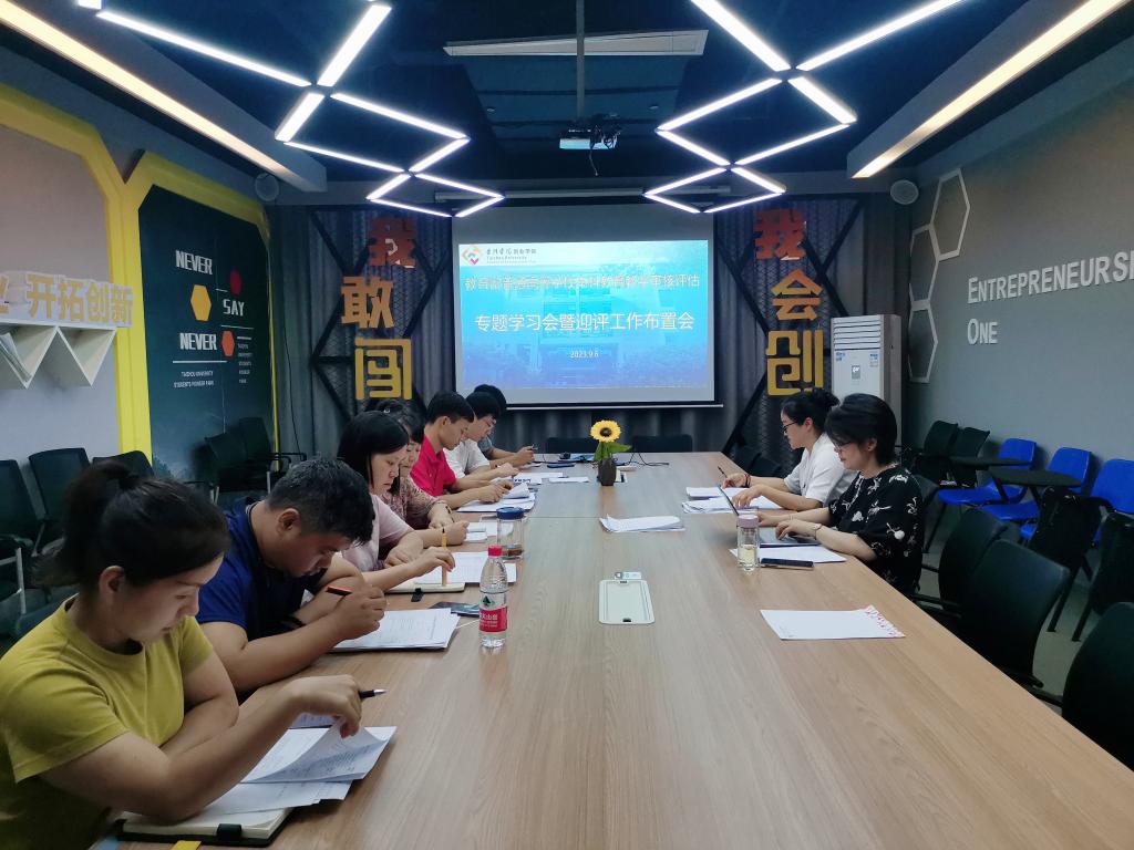 9月6日下午,为迎接我校即将到来的教育部本科教育教学审核评估,统筹推进新学期各项工作有序开展,创业学院召开了学院本科教育教学审核评估专题学习会暨迎评工作布置会。学院全体教职工参加此次会议,院长周瑶主持会议并对新学期工作做了安排部署。