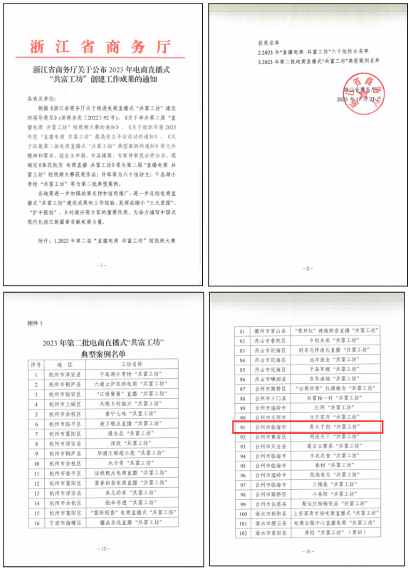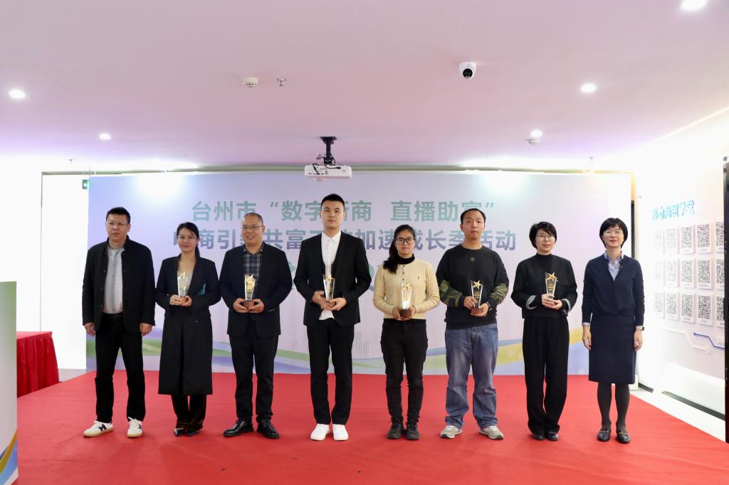 2023年12月15日,在省政府的部署下,台州市启动“数字新商·直播助富” 电商引领共富工坊加速成长季活动。台州市商务局电商处处长杨军向“青大T创”等电商直播团队颁发2023年度省级直播式“共富工坊”典型案例奖杯。