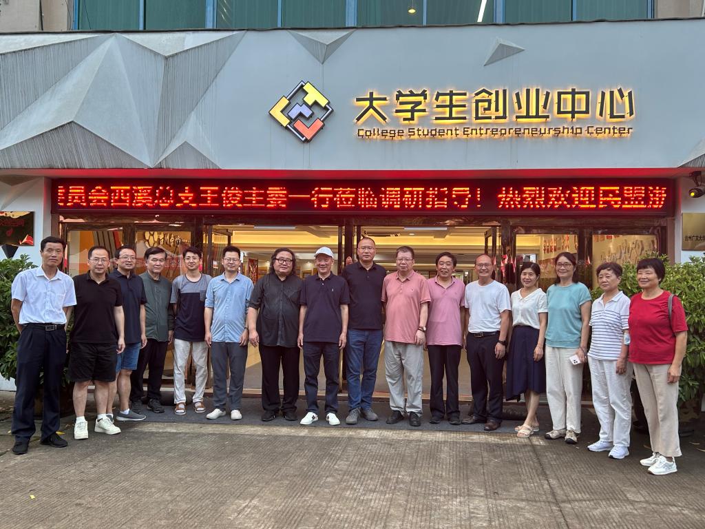 9月7日下午,民盟浙江大学委员会西溪总支主委、浙江大学哲学学院教授王俊一行莅临我校大学生创业中心参观交流。校党委委员、纪委书记、省监察专员楼胆群,台州学院副校长韩得满,创业学院院长周瑶和组织部副部长林霖等人陪同参观。
