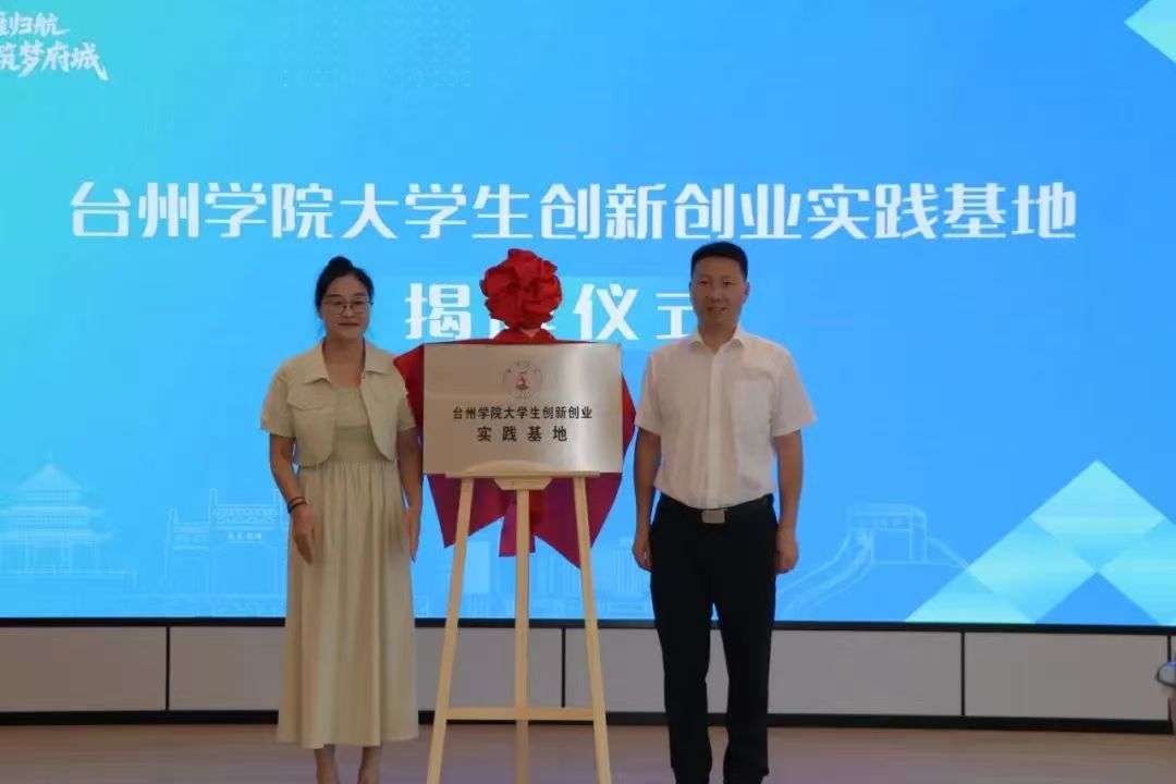 周瑶与临海市委组织部副部长、市委直属机关工委常务副书记王海波共同为“台州学院大学生创新创业实践基地”揭牌。该基地的设立,是台州学院深化校地合作、服务地方发展的重要举措,将为学生提供更广阔的实践平台,推动科研成果转化与地方产业需求精准对接,助力临海构建“高校—城市—产业”人才输送“快车道”。