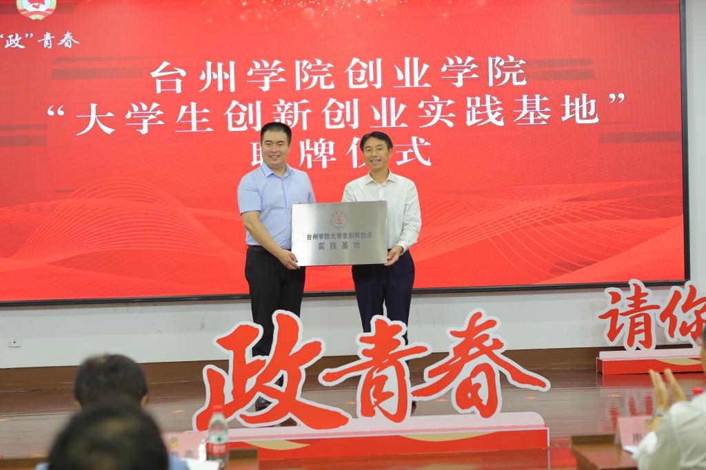 李建军代表学校和仙居蓝湾医械小镇建设开发有限公司总经理李晓完成了创新创业实践基地的授牌仪式。