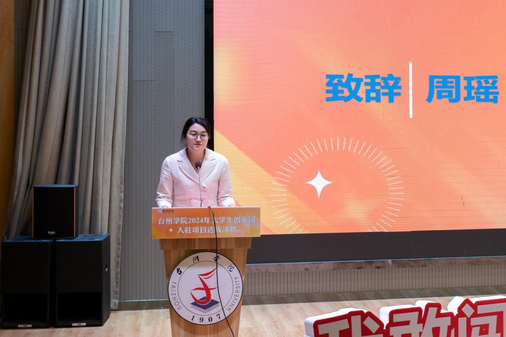 11月7日下午,我校2024年大学生创业园入驻项目选拔决赛在椒江校区大学生活动中心圆满举行。创业学院院长周瑶等校双创指导委员会委员代表、创业项目师生代表以及对创业感兴趣的在校学生百余人参加此次活动。台州市今上光电科技有限公司总经理夏秀国、台州智驾女子汽校创始人梁文丹、台州尚岸教育科技有限公司执行董事李帅、台州市就业服务中心主任沈强、浙江省人才发展集团浙江外服公司台州分公司经理曾祖建担任本次选拔赛现场专家评审。台州尚岸教育科技有限公司、台州智驾女子汽校为本次活动提供赞助。