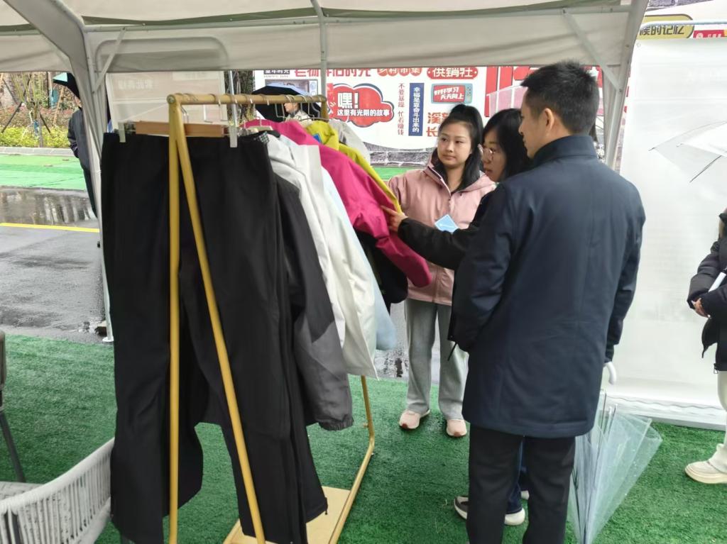 在集市上,缩山拳团队团队不仅展示了以缩山拳为主题的走马灯、娃娃和魔方等文创产品,还推出了具有实用价值的冲锋衣,吸引了众多游客和户外爱好者的目光。