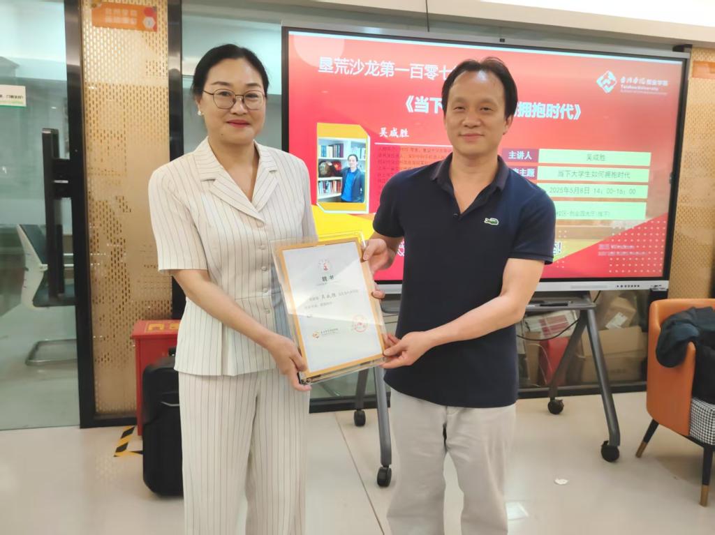 5月8日,垦荒沙龙第107期在我校临海校区大学生创业中心大厅圆满举行。本次活动特别邀请复旦研修生、资深投资人、多家企业创始人吴咸胜先生,就"当下大学生如何拥抱时代"这一主题进行了深度分享。